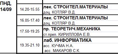 Группе ЗПГС-240. На данный момент отменены практические занятия по теоретической механике в понедельник 14 числа и в среду 16-го числа. Группам ЗПГС-240-243: Отменены лекции по правоведению в среду 16-го сентября. Материала для подготовки по обоим предметам предостаточно. Скоро он будет выложен на соответствующих страницах сайта. Преподаватели никаких претензий по присутствию и отсутствию студентов не предъявляли. |